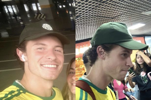 Cantor foi recebido por fãs e esbanjou simpatia no desembarque