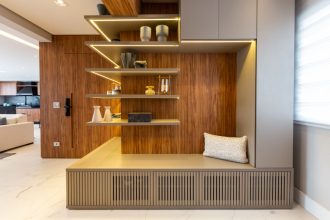 Diversos elementos originais da casa foram reaproveitados de forma criativa: paredes de mármore dos banheiros transformaram-se em mesas de centro, armários de imbuia viraram portas de estoque, pedras estruturais se tornaram bancos de jardim, e a mesa do DJ foi construída com madeira do telhado original. Esse processo garantiu uma estética orgânica e autêntica, valorizando a história do imóvel e reforçando práticas sustentáveis.