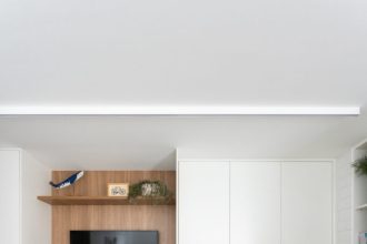 “E não me refiro apenas aos itens como a luminária de piso, mas também da generosa luz natural de uma grande esquadria”, aponta.