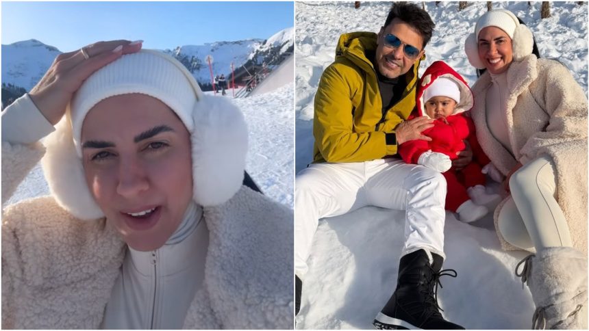 Durante uma viagem pelos Alpes Franceses, Graciele e Zezé surgiram usando roupas apropriadas para enfrentar o frio intenso. A pequena Clara, no entanto, acabou chamando a atenção ao aparecer com um visual encantador, vestindo um macacão vermelho e acessórios pensados especialmente para protegê-la das baixas temperaturas.