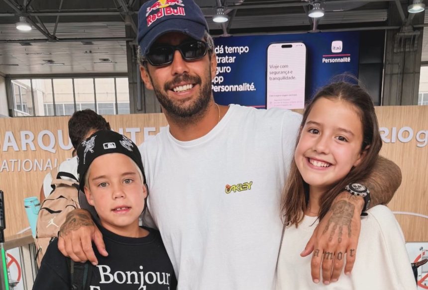 Em sua publicação, o surfista expressou o sentimento de perda temporária com as palavras: “É muito ruim se despedir deles! Até logo, meus amores”. A mensagem foi acompanhada de uma fotografia em que ele aparece ao lado dos gêmeos no aeroporto, evidenciando o vínculo familiar e a dificuldade do momento da separação.